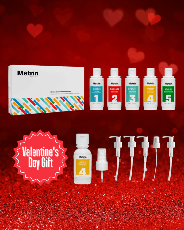 The Valentine’s Glow Ritual Gift Bundle features Metrin’s complete Skincare System for Her, plus exclusive travel-friendly bonuses designed to support your skincare ritual with ease and consistency.